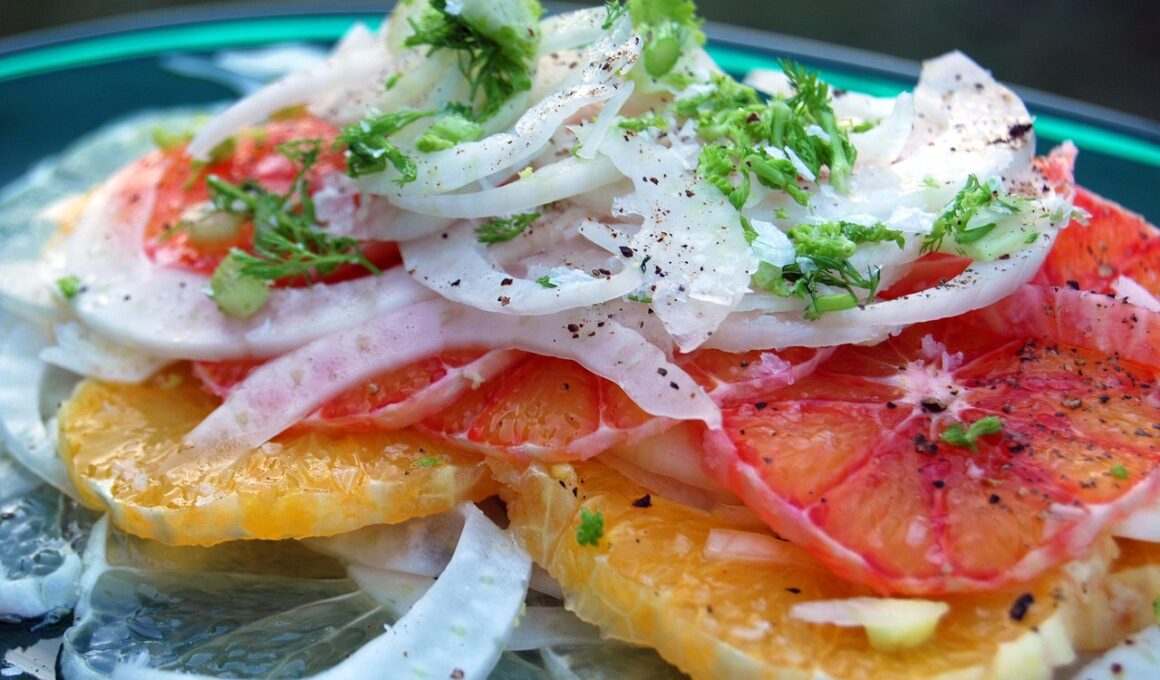 In conclusion, hydrating citrus fruit salads are not only delicious but also an excellent way to up your hydration game. They serve as versatile dishes that can be tailored to suit various occasions and preferences, allowing for endless experimentation and creativity. By incorporating an array of ingredients, from savory components like avocados to sweet toppings such as honey-doused yogurt, you can achieve a complex balance of flavors and textures that excite the palate. Moreover, the use of fresh herbs and spices adds an aromatic quality that enhances the overall experience. Whether you’re preparing a quick snack, a breakfast option, or an impressive dish for guests, these citrus salads have got you covered. Their hydrating properties, paired with the nutritious benefits of the fruits, promote overall health while satisfying cravings. This recipe concept enables healthy eating without sacrificing taste or enjoyment. So next time you want something refreshing, give these hydrating citrus fruit salads a try. You might discover a new favorite dish that becomes a staple in your hydrating meal prep repertoire. Stay cool, refreshed, and energized!