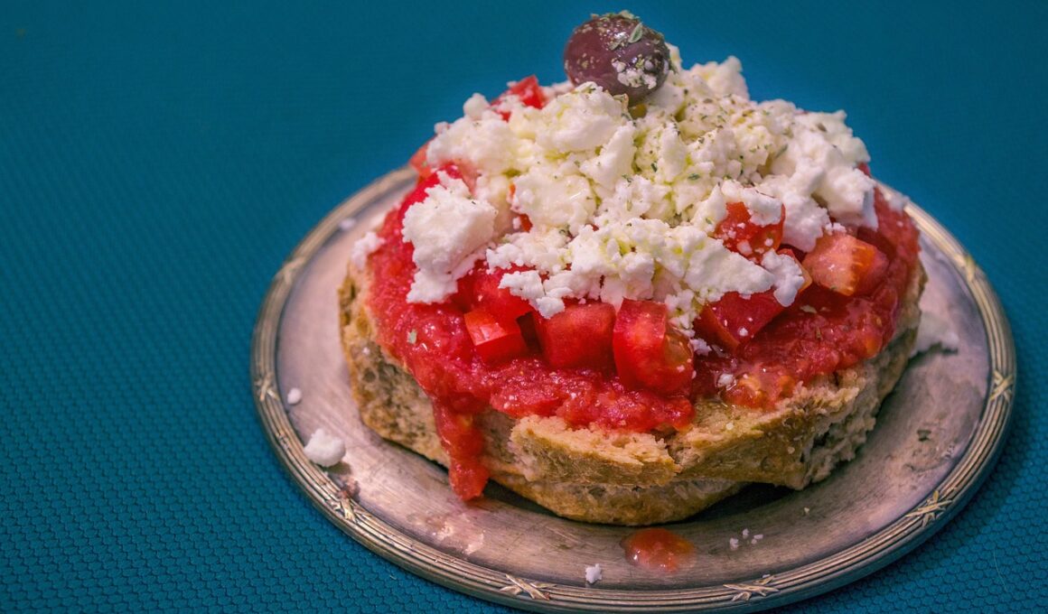 Incorporating fresh ingredients into breakfast enhances both taste and nutrition. The Mediterranean region offers an abundance of fresh fruits and vegetables that pair beautifully with traditional breads. Consider crafting an open-faced sandwich using crusty ciabatta as a base, topped with ripe avocado, sliced tomatoes, and crumbled feta cheese. Adding a drizzle of balsamic glaze elevates the flavors. Not only does this combination provide excellent nutrition, but it also delights the palate with its freshness. Another delightful option is to create a vegetable omelette served alongside rosemary focaccia. The dish showcases seasonal vegetables, including bell peppers and spinach, sautéed in olive oil. Furthermore, consider pairing your bread with yogurt drizzled with honey and sprinkled with nuts. This offers a perfect blend of sweetness and crunch, all while being delicious and satisfying. Any meal that includes local ingredients fosters connection with the regions’ culinary history. Such breakfasts bring joy and wellness in every bite. To enhance variety, experiment with herb-infused olive oils that can also be drizzled over bread. So, let’s explore breakfast ideas that highlight the radiance of the Mediterranean diet!